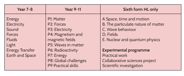 Physics is an enquiry-based discipline and you develop practical and investigational skills as well as knowledge and understanding.