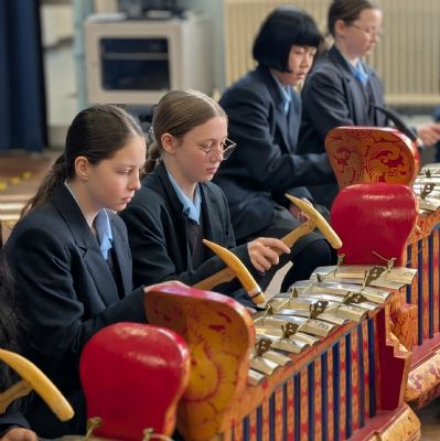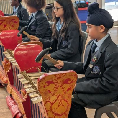 We recently welcomed in Mike from Inspireworks who came to deliver Gamelan workshops to all of our Year 7 students. To have authentic Balinese Gamelan instruments in school was amazing and the classes all rose to the challenge of learning a 'warrior dance' piece of music from Bali.