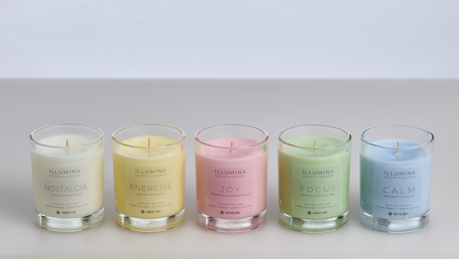 ‘Illumina’, mood-sensory candles prepped with spotify QR codes, conveniently transport you to carefully curated playlists that link to the mood of the candles. Scan, play and let the playlist match the candle's mood!
