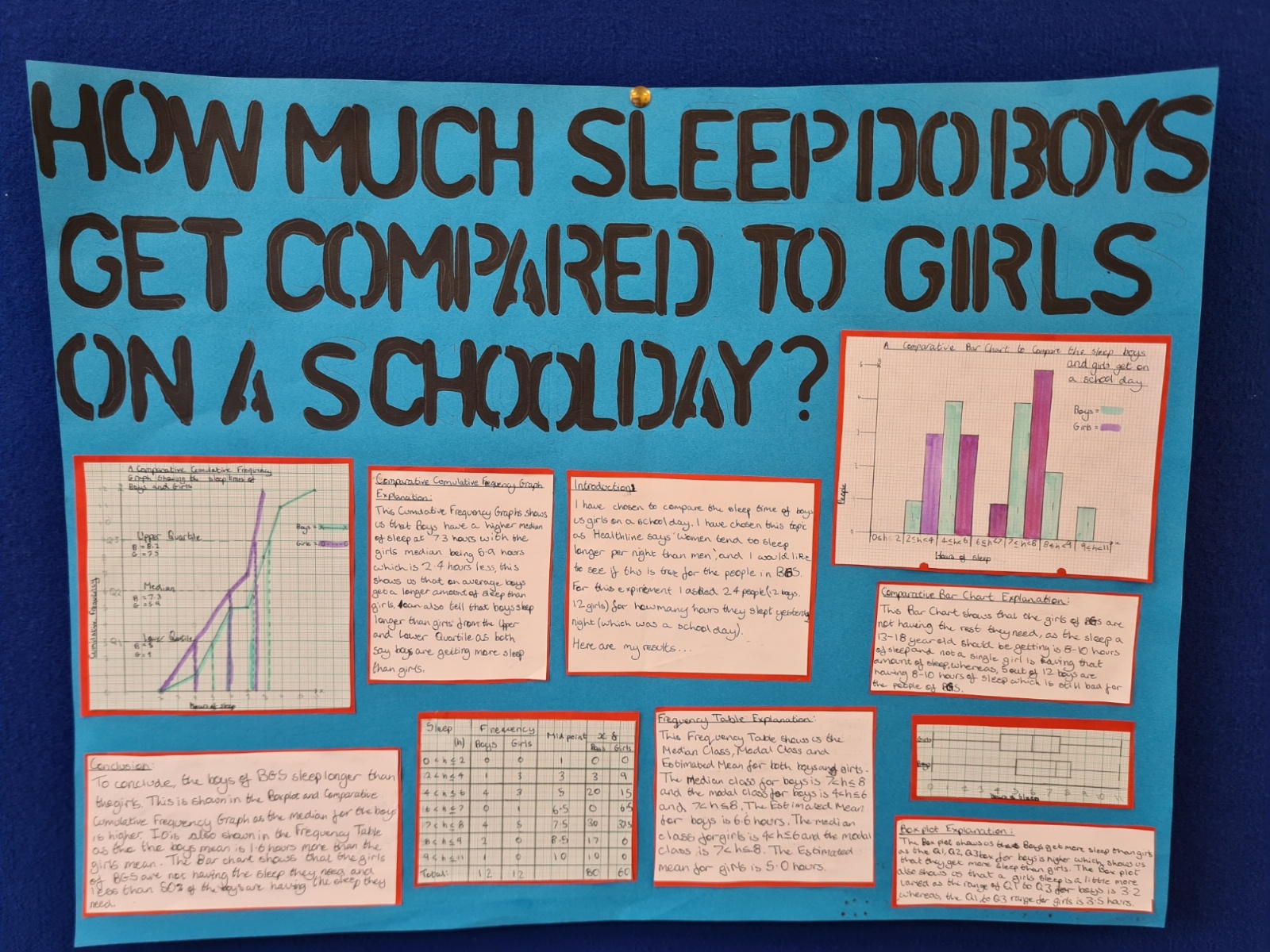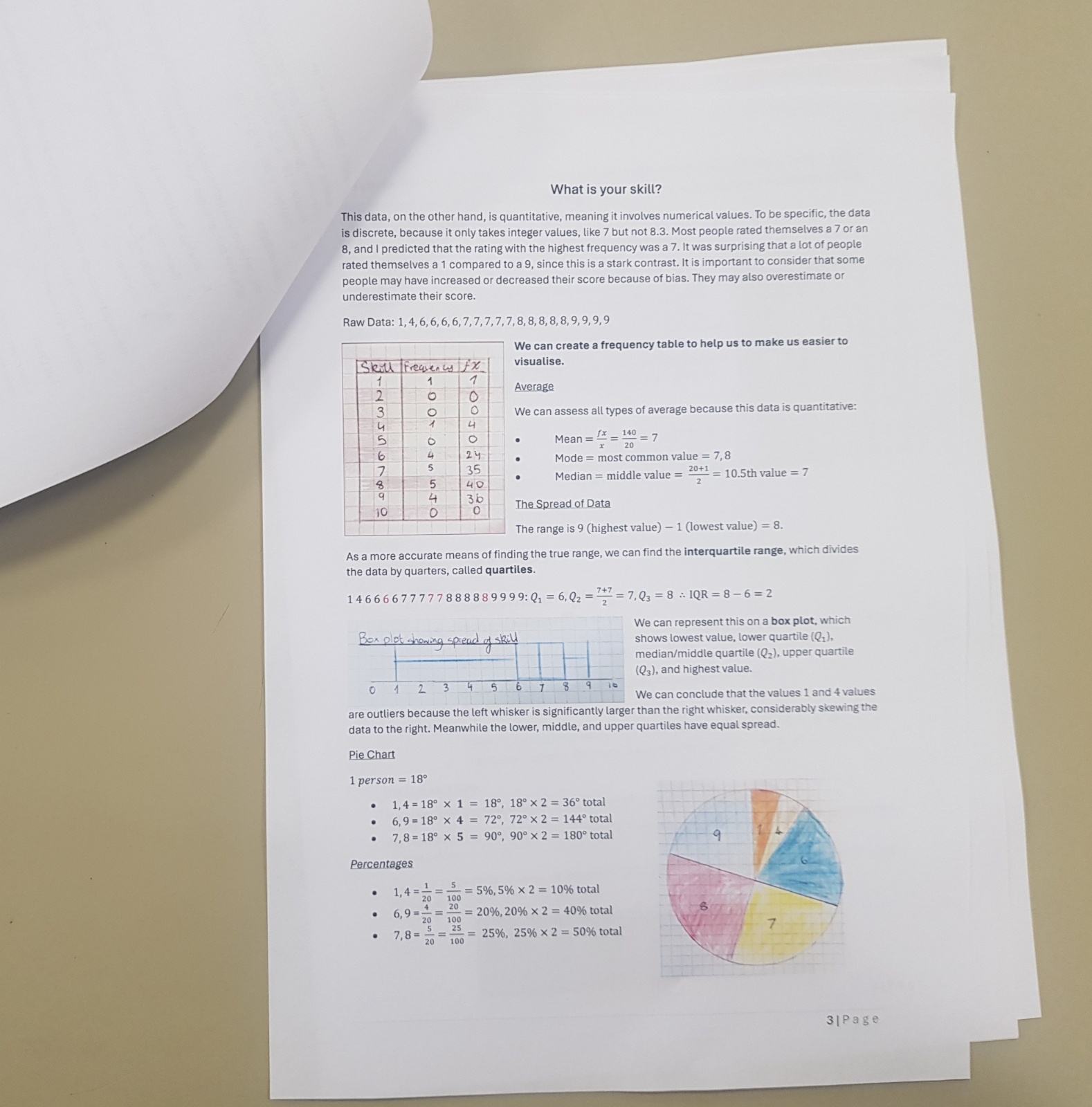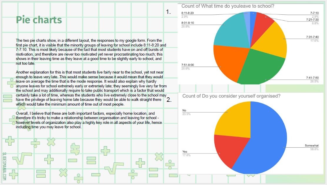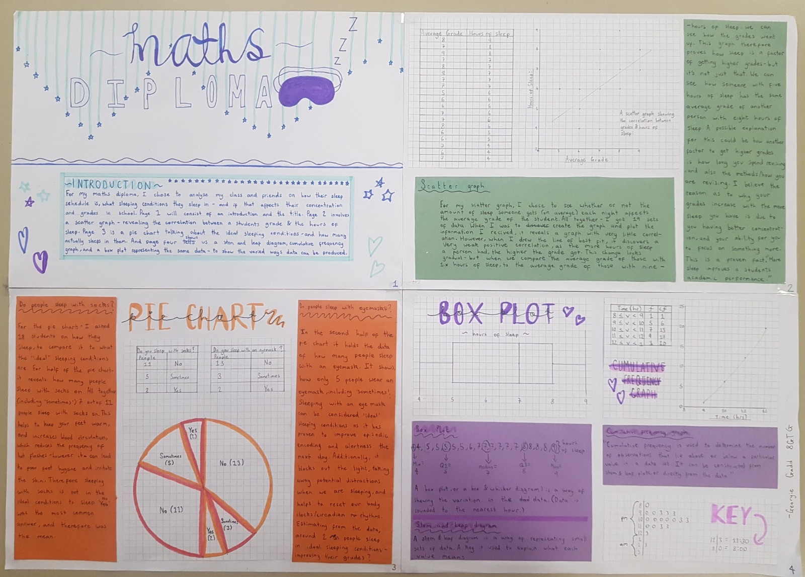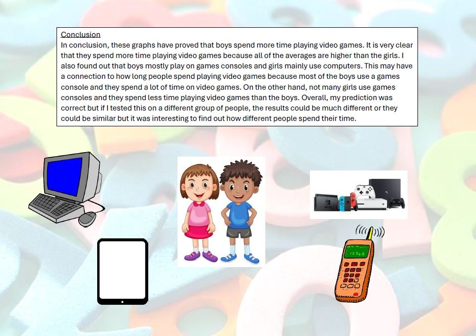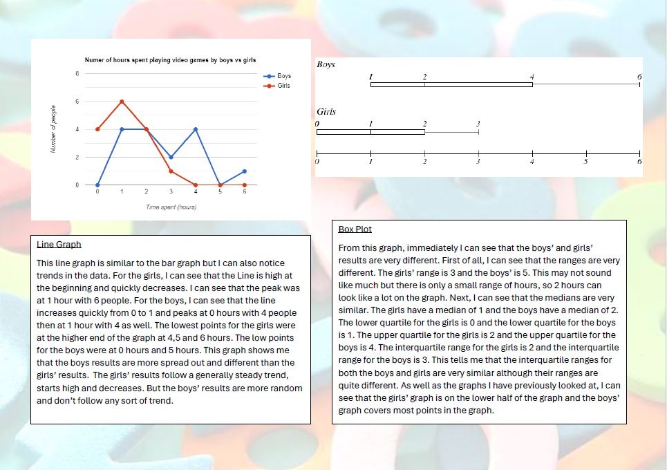 For their Maths Diploma, Year 8 students were tasked with a statistical investigation of data which they had researched and/or collected themselves. Our hardworking students came up with some intriguing ideas - from asking their friends to identify their favourite food, to looking at the numbers associated with their favourite sports team or video game, to measuring how many kick-ups students of different ages can perform on the football pitch!