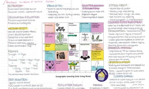 Published 03/03/22I would like to celebrate some amazing revision work carried out with my Year 10 Geography classes recently. Students were preparing for an end of unit assessment on the ‘Living World’ topic which included work on ecosystems, tropical rainforest and hot deserts.