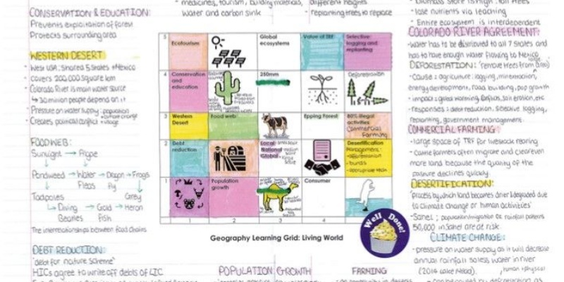 I would like to celebrate some amazing revision work carried out with my Year 10 Geography classes recently. Students were preparing for an end of unit assessment on the ‘Living World’ topic which included work on ecosystems, tropical rainforest and hot deserts.