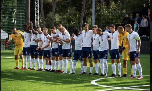 Former Bexley Grammar School students Mal Turner (3rd from left, next to the Goalkeeper on the left) Riley Woods (5th from left) and Aidan Wicks (Goalkeeper on the right) are currently in Croatia representing England in the U23 6 a side World Cup.