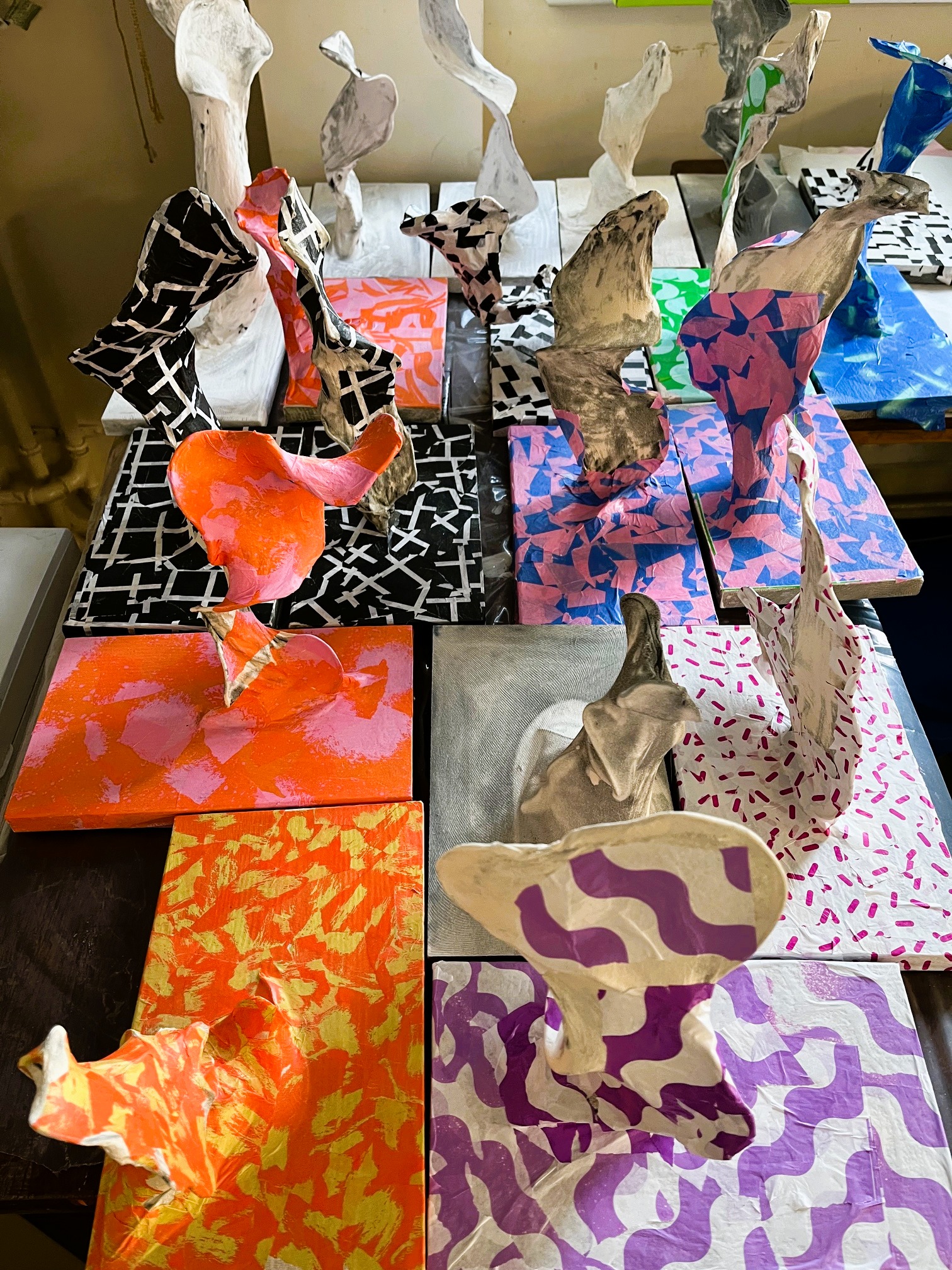 We've been experimenting with abstract sculptures inspired by Jean Dubuffet, using tights, wires and paper to create them. It's been so much fun working alongside friends and seeing how everyone's creations turn out so differently. Plus, Mrs Millar always has sweet treats for us, such as doughnuts and cookies (my personal favourite).