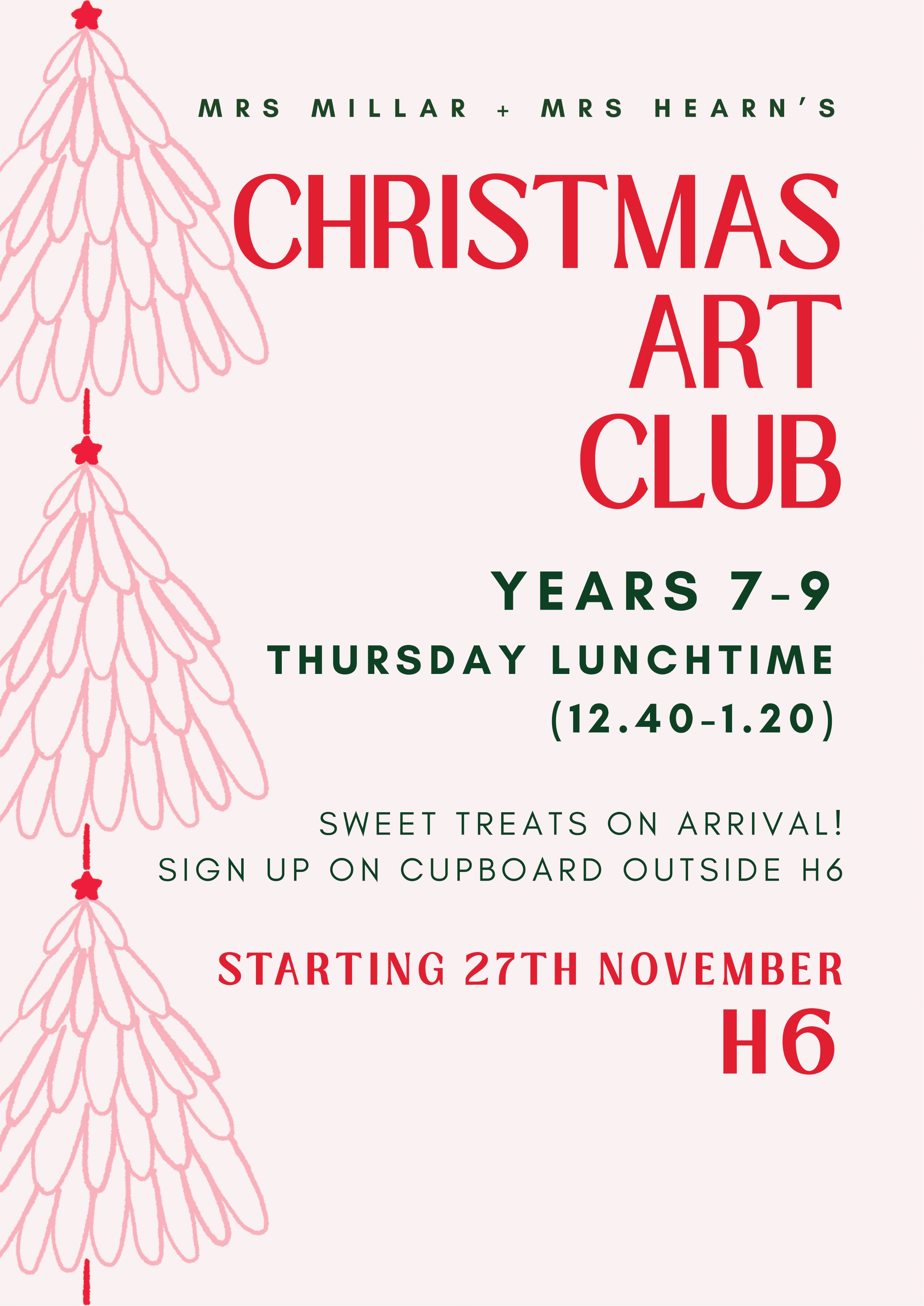 You can make Christmas cards, design decorations, try sparkly materials, and just relax with your friends while making something fun. You don’t need to be amazing at art; everyone is welcome, and it’s all about the Christmas vibes. It's a cosy break from lessons, with yummy treats provided and Christmas music playing in the background! It’s a great way to get into the holiday spirit at school. If you want a cheerful, creative spot at lunchtime, this club is the right place for you!