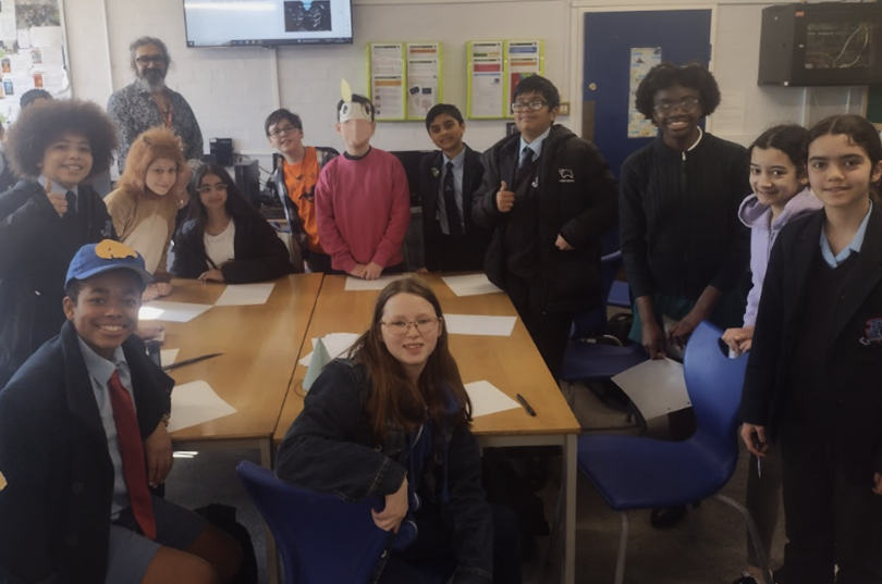 Stephen Saleh (pictured top left below), published author of the graphic novel Dark Lines of London gave a Year 7 assembly and workshop. It was a unique opportunity to inspire our young readers and writers to explore their own literary talents.