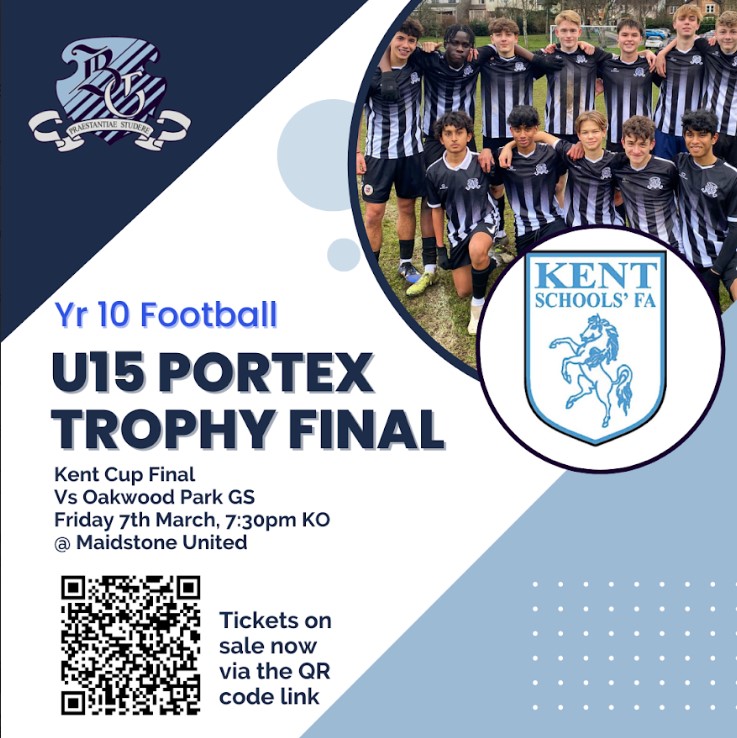 Please come and support our Year 10 Football team playing in the Kent Cup Final on the 7th March against Oakwood Park Grammar. This is the first team at Bexley Grammar to have made back to back finals (and winning last year!) in over 20 years! The boys have worked extremely hard to get here and would appreciate any support that is able to travel with us.
