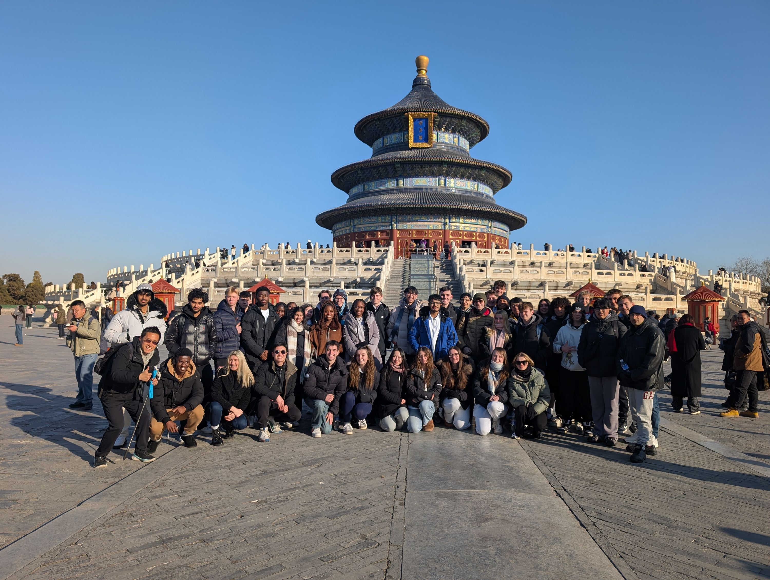 During the February half-term, a group of 40 Business and Economics students went to China, accompanied by Mrs. Harris, Mr. Joe, Mr. Dhir, and Mr. Cheuk.