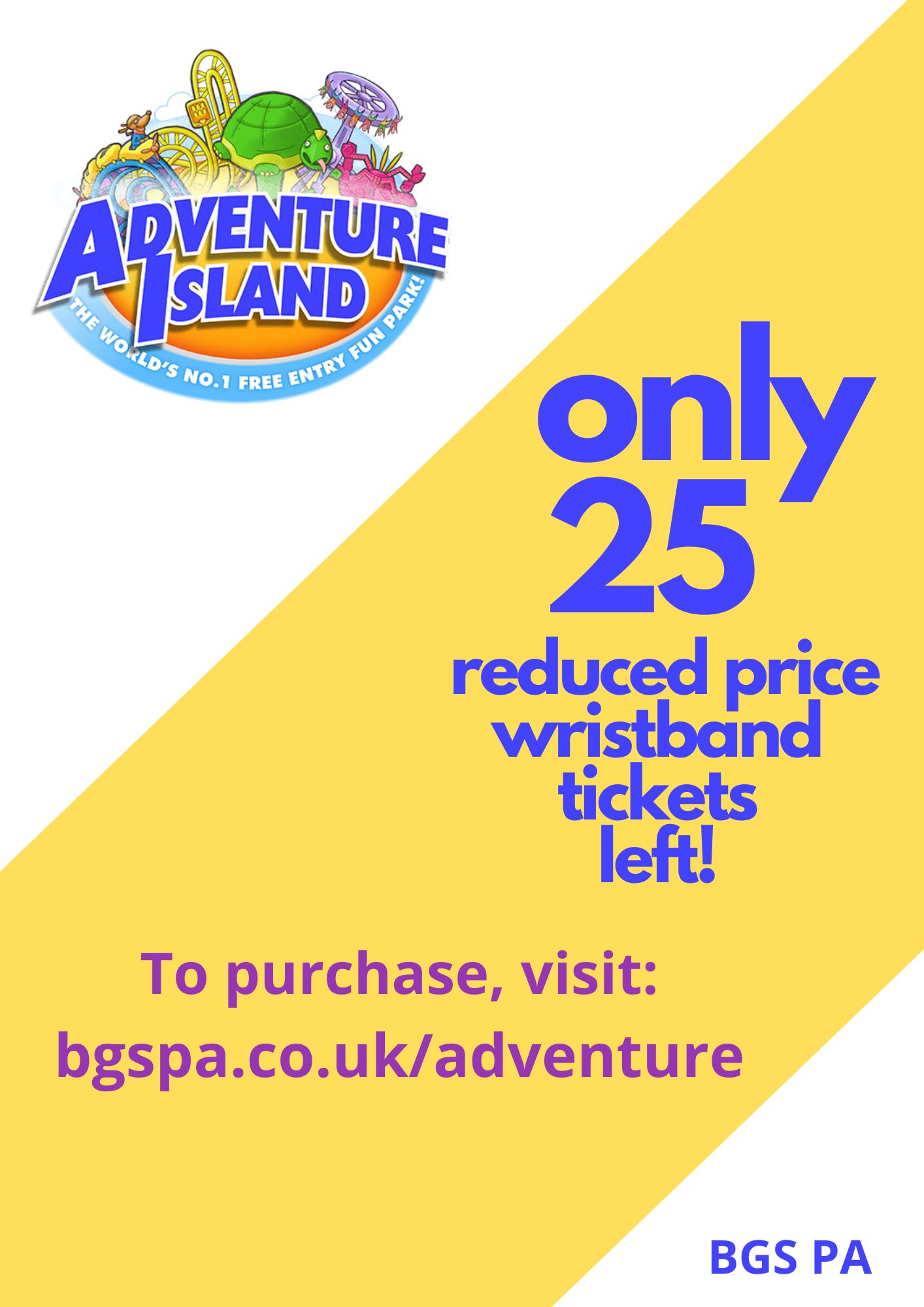 Adventure Island only 25 wristbands tickets left. Don't miss out order today for the half-term break!