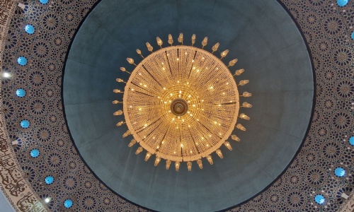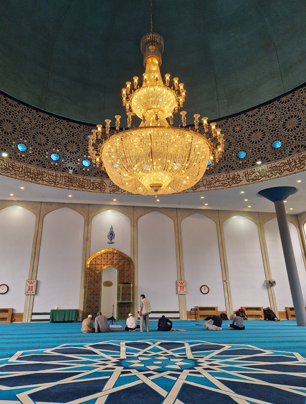 Unbeknown to us, we were in for a very special experience: since our visit overlapped with prayer time, we were allowed to go back to the prayer hall and witness Muslims performing Salah, one of the five pillars of Islam. It was very solemn and moving to see all of those worshippers taking part in it together, involved in the recitations and physical movements and facing Mekkah at the same time as millions of other Muslims worldwide.