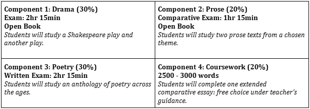 Each Literature group may study different texts, depending on the interests and expertise of the teachers who will teach the group throughout the course. The department endeavours to give students a comprehensive spread of works that we hope will enthuse and enlighten students, and also prepare those who are considering Literature at university, or indeed any subject that includes analysis, critical thinking and creative skills such as Law, History or Psychology.