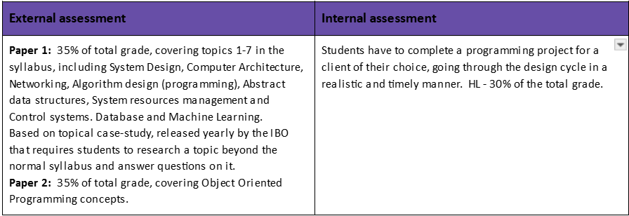 At KS5 IB Computer Science, homework is assessed weekly, and there are mock examinations twice a year.