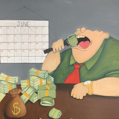 Five image or video files (each up to three minutes long) of artwork—each accompanied by a title and details on medium and size.